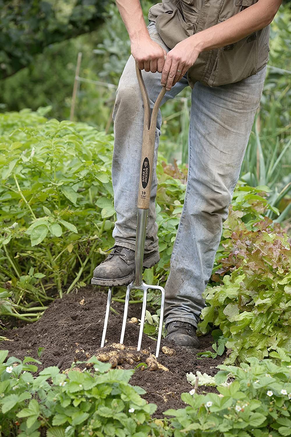 The four tines are sharp and strong, making it easy to dig up potatoes and other root vegetables without damaging them.